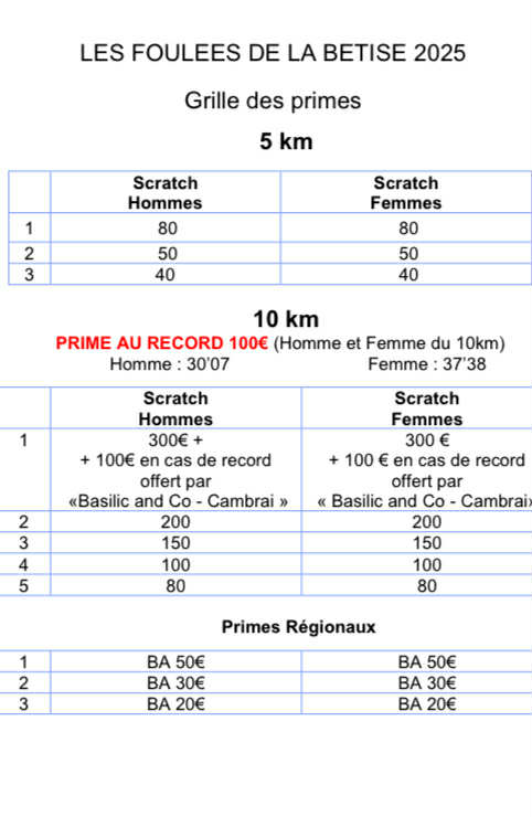 PRIMES pour les 5 et 10 KM